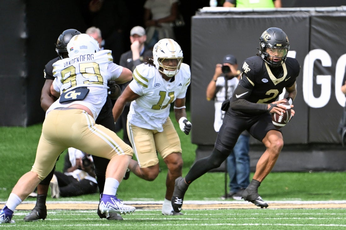 Two plays later, Ashford connected on a 35-yard pass to Chris Barnes, pushing the Demon Deacons’ drive to Georgia Tech’s 20-yard line. Claiborne then broke off a 16-yard rush, leading to Ashford’s 4-yard rushing score to give Wake Forest a 7-3 edge at the 10:46 mark of the first half.