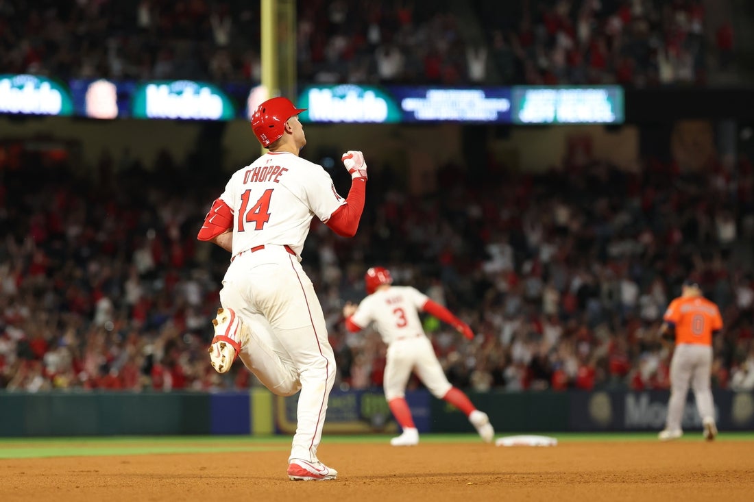 The Angels took three of four games earlier in the week in New York against the East-leading Yankees. After dropping the series opener to the Astros 3-2 in 10 innings on Friday, Los Angeles posted a 9-1 victory Saturday as catcher Logan O’Hoppe hit two home runs and drove in four runs and right-hander Jose Soriano struck out 10 while allowing one run on three hits over 6 2/3 innings.