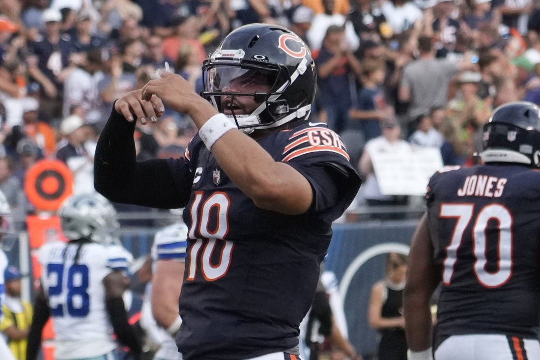 Williams spread the ball — and scoring passes — to receivers Luther Burden III, Rome Odunze, DJ Moore and tight end Cole Kmet while compiling a career-best passer rating of 142.6.