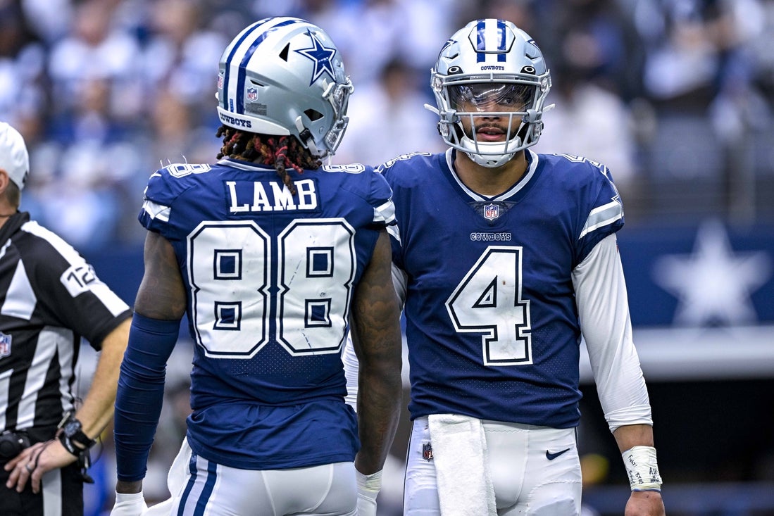 He went to the sideline after being dragged to the turf on a tackle by linebacker Noah Sewell that pulled his body opposite the direction of his forward momentum. Sewell landed on Lamb’s left knee and ankle on the play with 8:39 remaining in the first quarter.