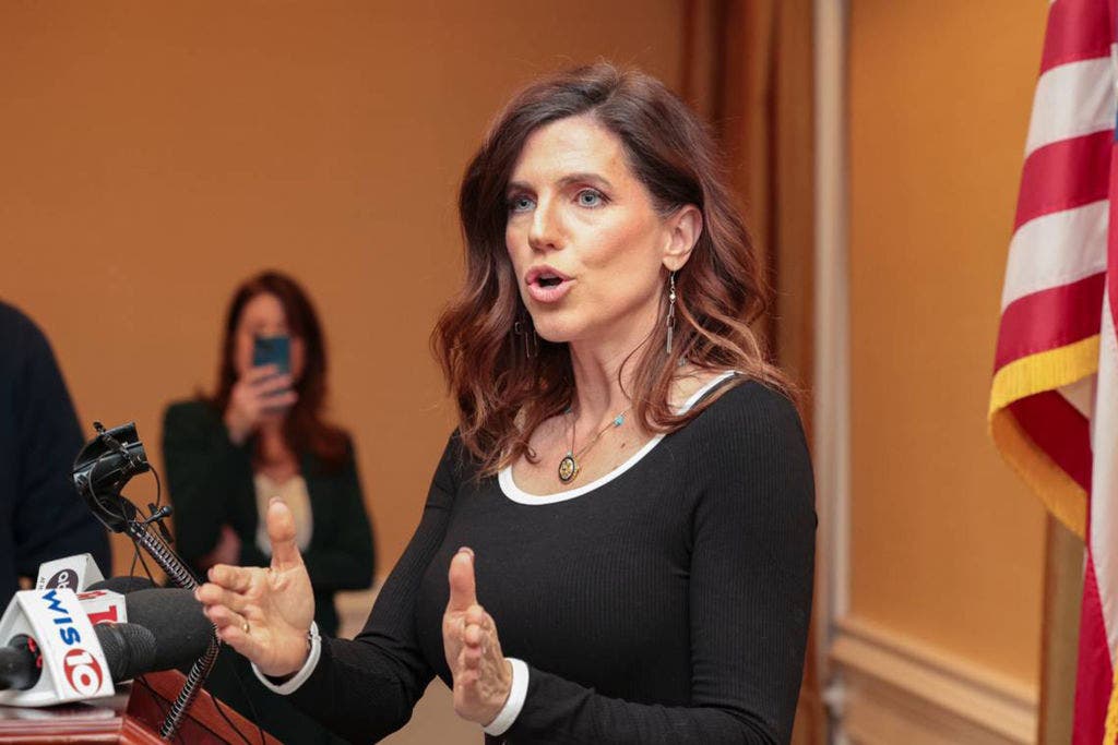 Republican South Carolina congresswoman Nancy Mace speaks during a visit to the Richland County GOP meeting. (Tracy Glantz/The State/Tribune News Service via Getty Images)