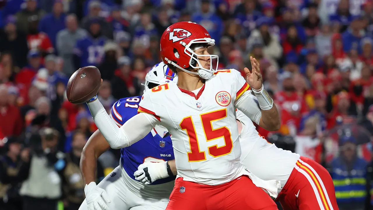 Patrick Mahomes of the Kansas Metropolis Chiefs throws a move in opposition to the Buffalo Payments at Highmark Stadium on Nov. 17, 2024, in Orchard Park, New York. (Timothy T Ludwig/Getty Pictures)